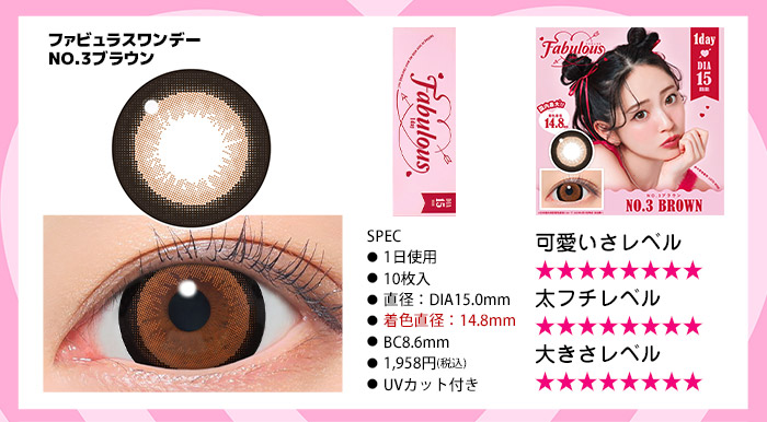 他のカラコンと比べ物にならないくらいの太フチに、着色直径14.8mm!