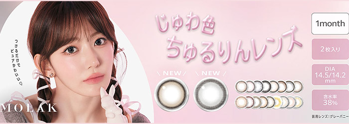 宮脇咲良プロデュース&イメージモデルのワンデーカラコン「MOLAK(モラク)」。MOLAKは、瞳の印象を引き立てるカラーリングと繊細なデザインで自然な美しさを演出します。