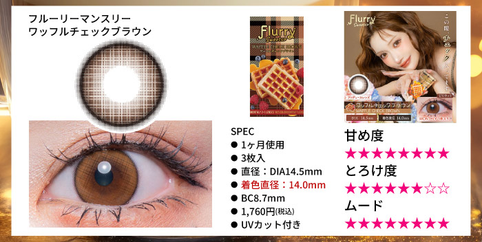 さりげないチェックデザインが瞳に溶け込み、やわらかなブラウンが自然な深みをプラス。