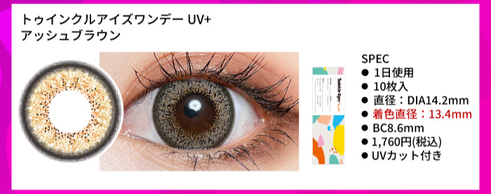 トゥインクルアイズワンデーUV+アッシュブラウン