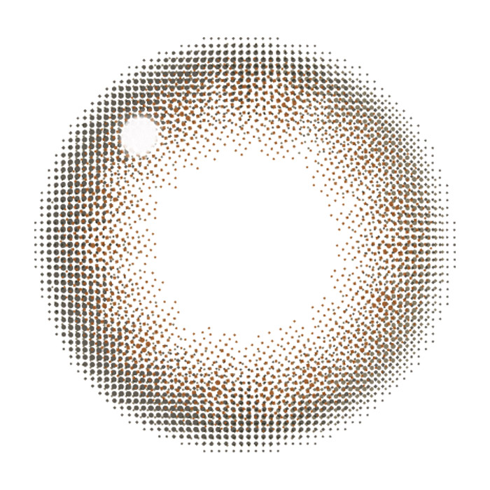 瞳にすっと溶け込み、究極の透明ツヤ感を演出。 ほのかに輪郭を プラスしながら柔らかい瞳の印象に。溶け込み系裸眼レンズ。