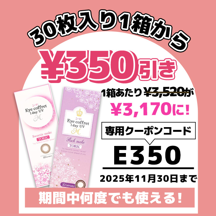 | 商品名 | 【350円OFFクーポン】【乱視用CYL-1.25】アイコフレワンデーUVMトーリック リッチメイク 30枚入 福原遥 |
