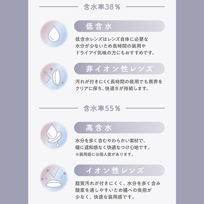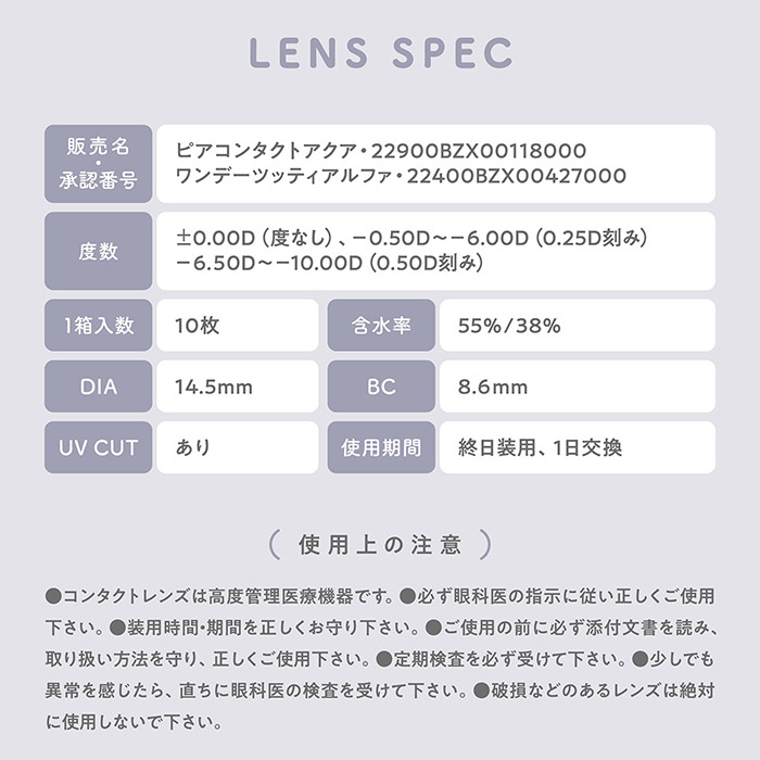 | 使用期間 | 1日使い捨て(ワンデー、1day) |