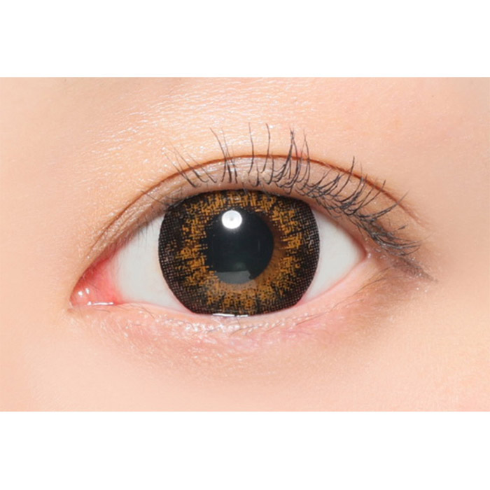 揺るぎない定番ブラウン。ブラック×ブラウンのグラデで瞳に馴染みつつ、しっかり盛れる定番レンズ。