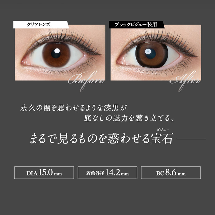 永久の闇を思わせるような漆黒が底なしの魅力を惹き立てる。まるで見るものを惑わせる宝石(ビジュー)。