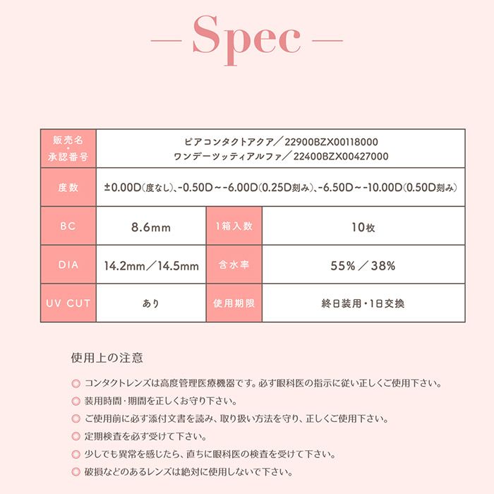 | 使用期間 | 1日使い捨て(ワンデー、1day) |