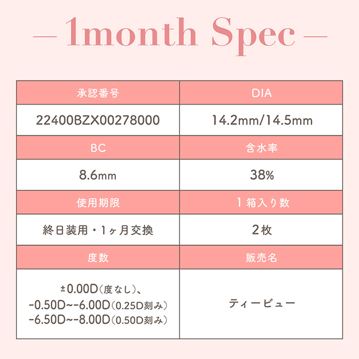 | PWR(度数) | ±0.00~-8.00 |