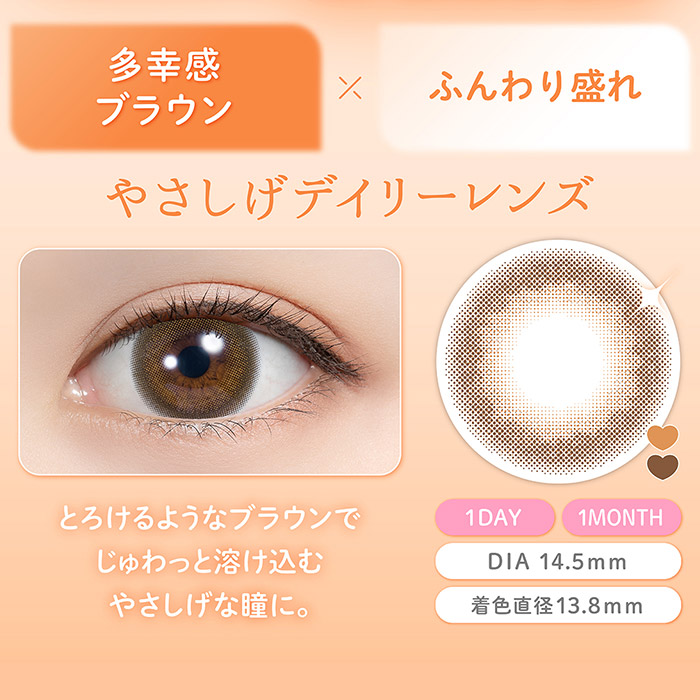 どんなメイクにも似合うから毎日使える!じゅわっとろけるようなブラウンで優しげな瞳に。自然に盛れる大きめブラウンはfeliamoに任せて!