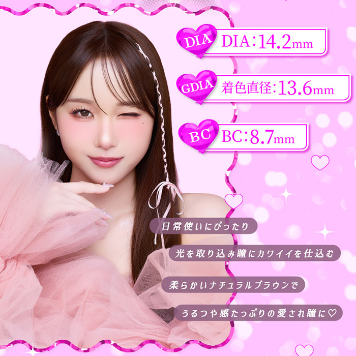 日常使いにぴったり。光を取り込み瞳にカワイイを仕込む柔らかいナチュラルブラウンで、うるつや感たっぷりの愛され瞳に!