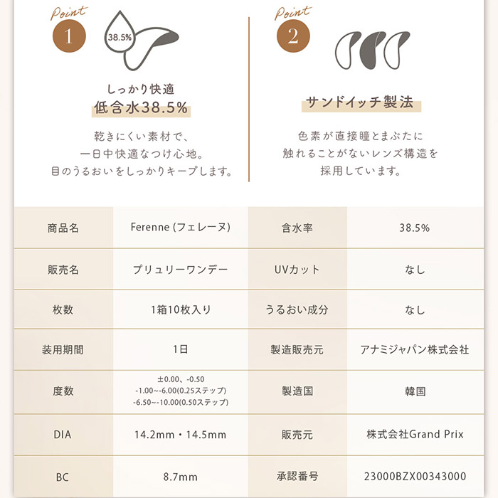 | 使用期間 | 1日使い捨て(ワンデー、1day) |