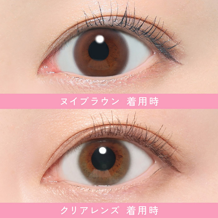 うるっと透ける裸眼ブラウン。ふんわり透明感ブラウンと繊細フチで、裸眼そのもののような抜け感を叶える。潤んだようなやさしい印象に。