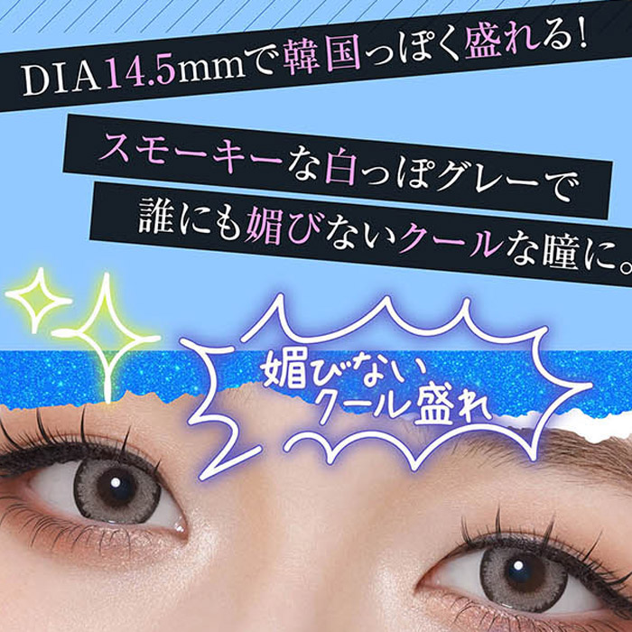 DIA14.5mmで色っぽく盛れる!スモーキーな白っぽグレーで誰にも媚びないクールな瞳に。