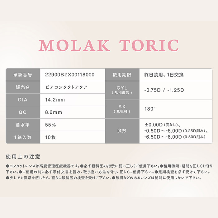 お届可能日2~3営業日 / BC(ベースカーブ)8.6mm / DIA(直径)14.2mm / CYL-0.75 / AXIS180°