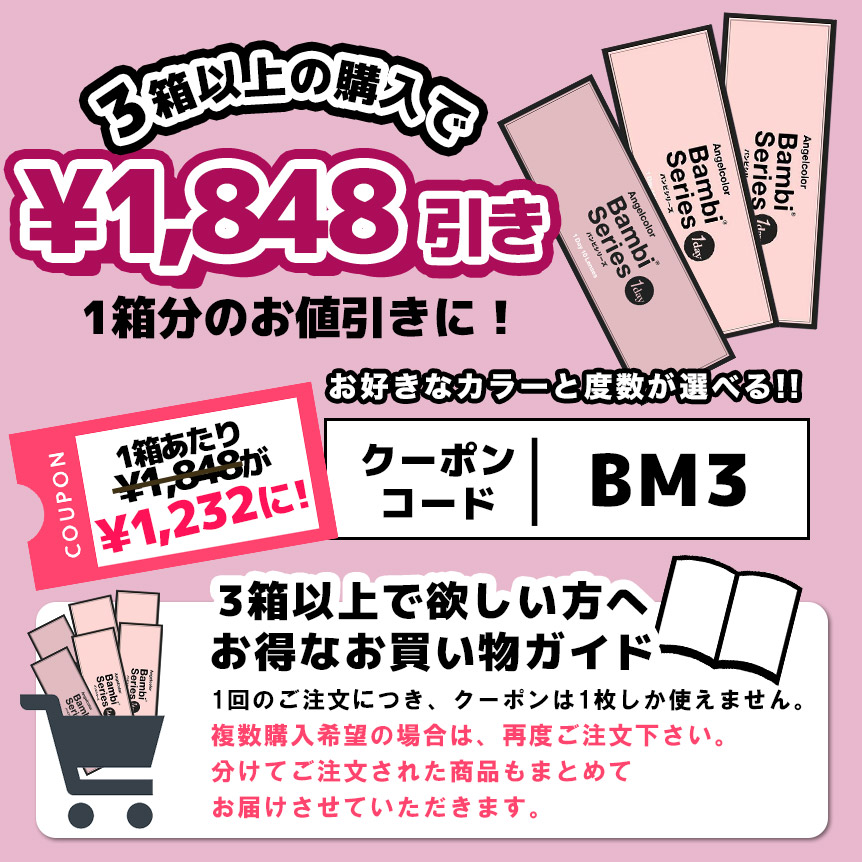 | 商品名 | 【3箱購入で1箱分無料クーポン】エンジェルカラーバンビワンデー スノーパープル 10枚入 益若つばさ |