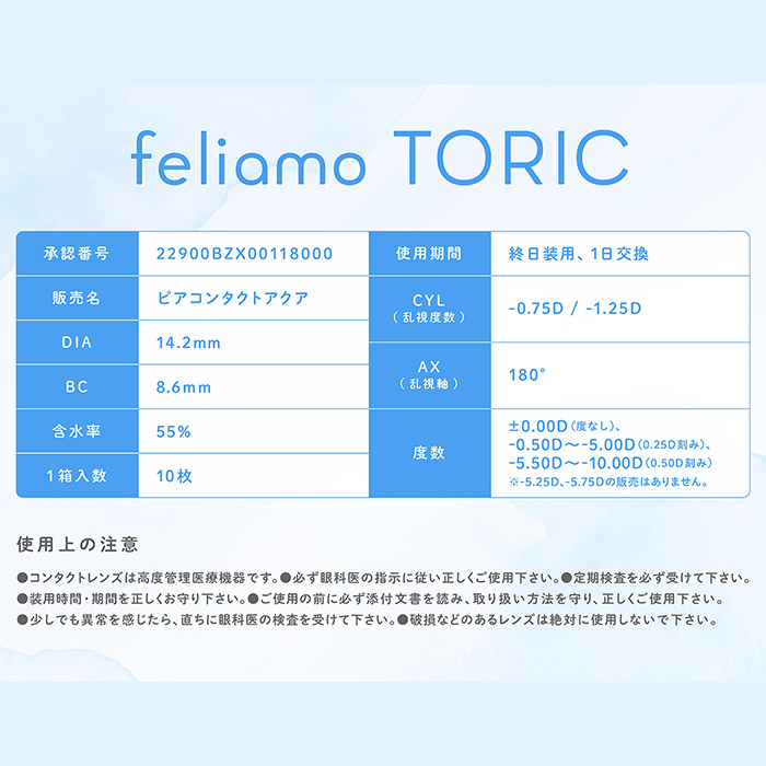 お届可能日2~3営業日 / BC(ベースカーブ)8.6mm / DIA(直径)14.2mm / CYL-1.25 / AXIS180°