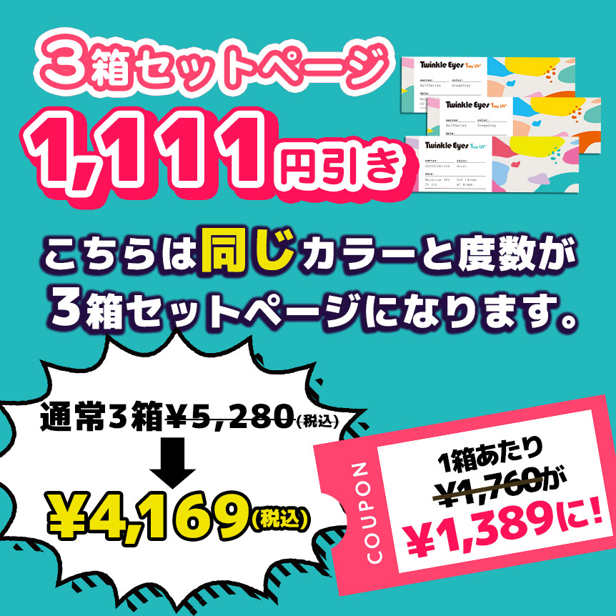 単品ページで3箱カートに入れていただき、1,111円引きクーポンを購入画面でご利用ください。