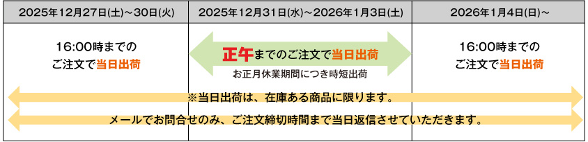 こちらの商品は、年末年始も当日発送OKの商品となります。