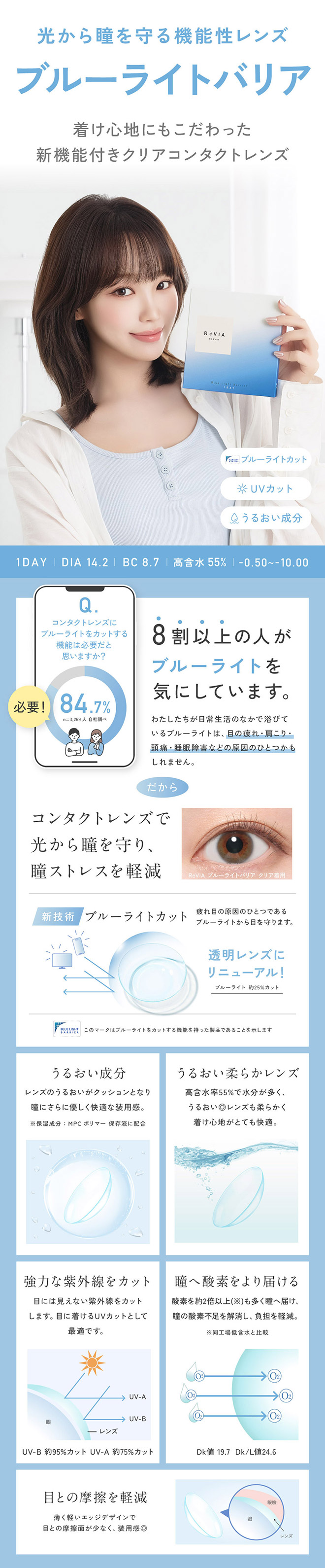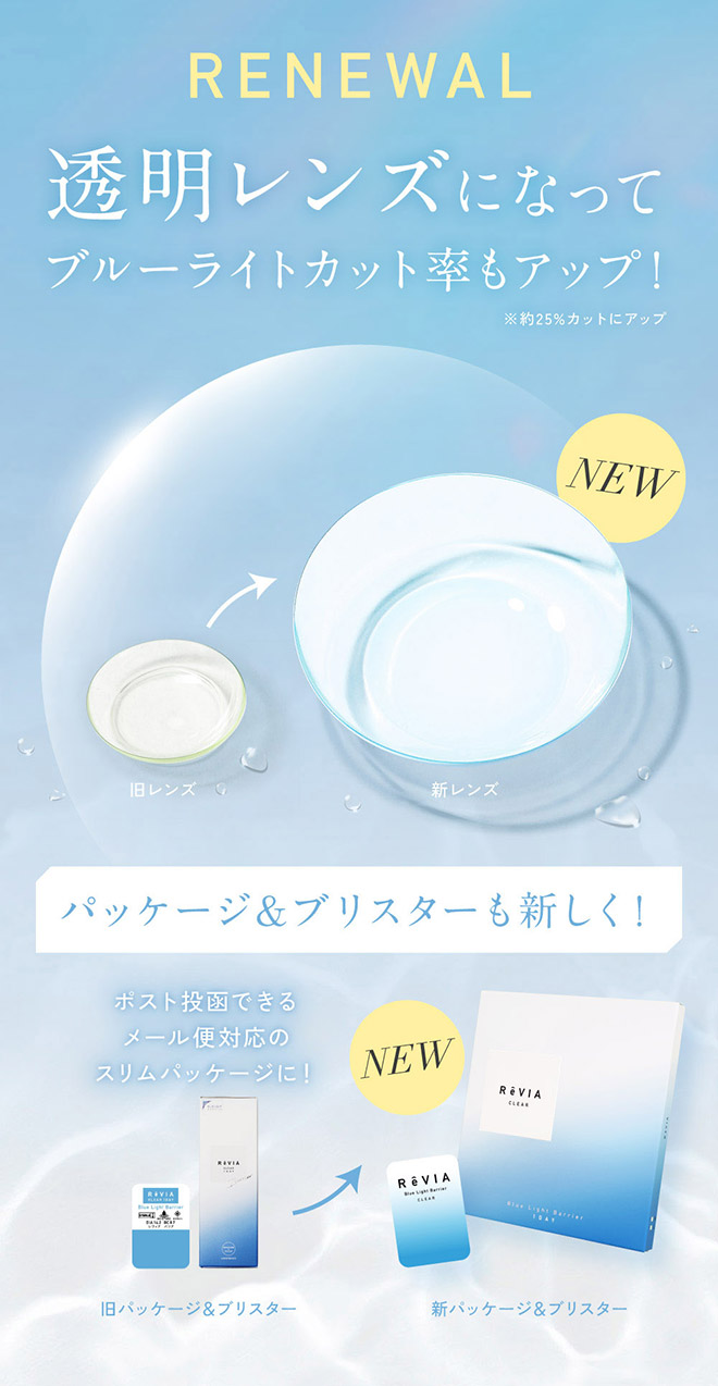 キムチェウォンさんイメージモデル「ReVIA(レヴィア)」のブルーライトカットのクリアコンタクト。