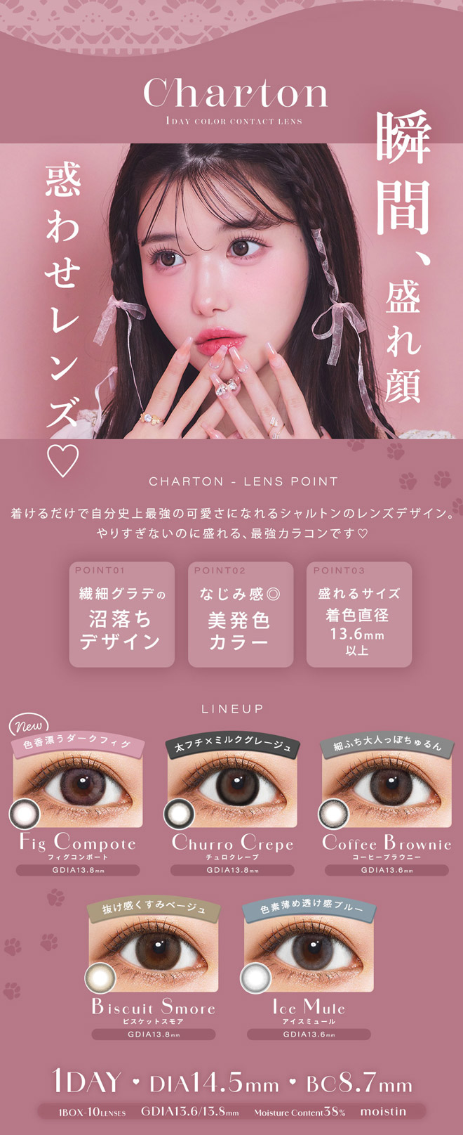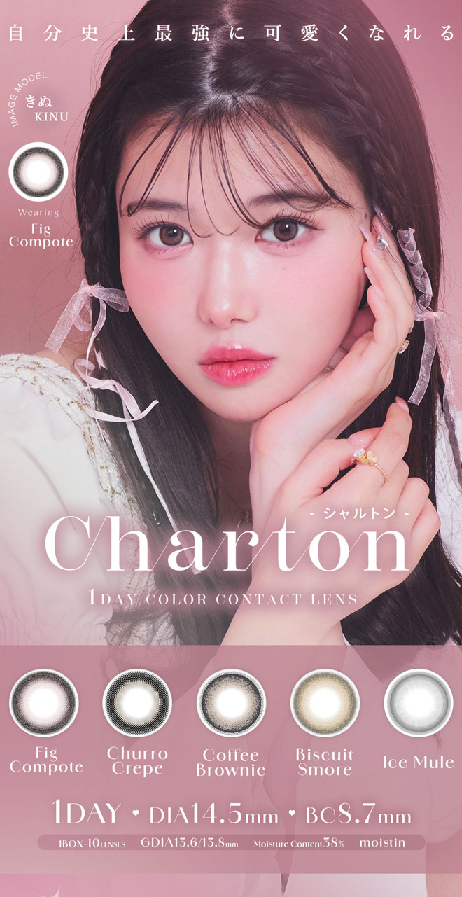 美容系youtuber「きぬ」イメージモデルのワンデーカラコン「シャルトン(Charton)」。自分史上最強に可愛くいれる。麗しくも可愛らしい女の子をイメージしたブランドで、盛れるデカ目サイズで人気!